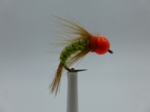 Size 14 Tungsten - Fl Orange Caddis Green - Barbless